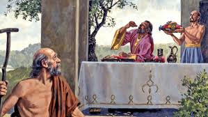 «C’era un uomo ricco, che indossava vestiti di porpora e di lino finissimo, e ogni giorno si dava a lauti banchetti. Un povero, di nome Lazzaro, stava alla sua porta, coperto di piaghe, bramoso di sfamarsi con quello che cadeva dalla tavola del ricco; ma erano i cani che venivano a leccare le sue piaghe.