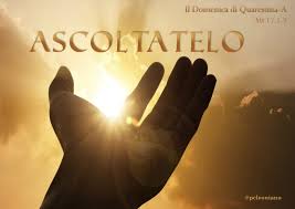 Prendendo la parola, Pietro disse a Gesù: «Signore, è bello per noi essere qui! Se vuoi, farò qui tre capanne, una per te, una per Mosè e una per Elia». Egli stava ancora parlando, quando una nube luminosa li coprì con la sua ombra. Ed ecco una voce dalla nube che diceva: «Questi è il Figlio mio, l’amato: in lui ho posto il mio compiacimento. Ascoltatelo».